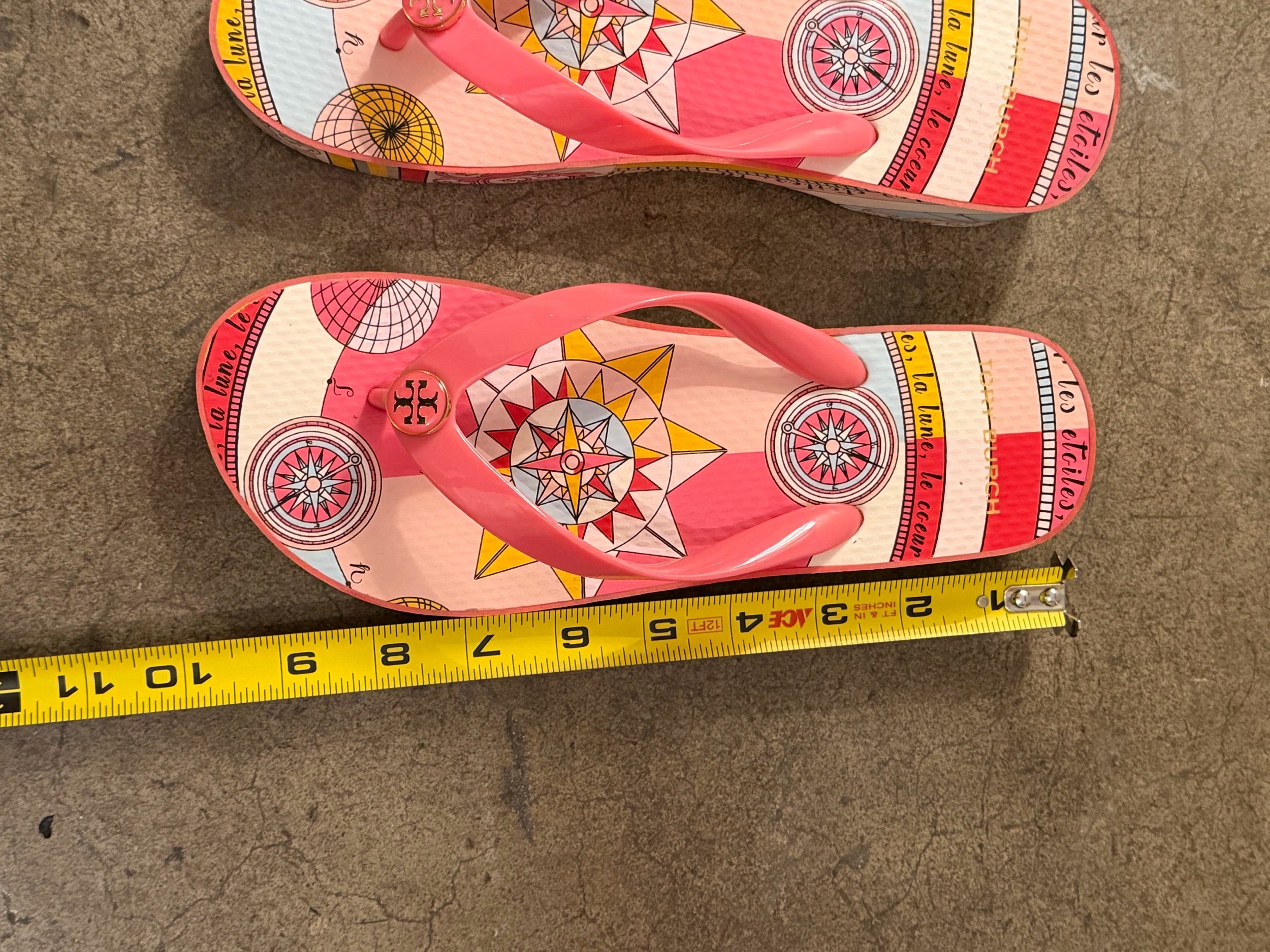 In excellent condition, these colorful and modern Tory Burch wedges are a girly and pool-ready addition to your closet! There is wear shown on the bottom, very minimal