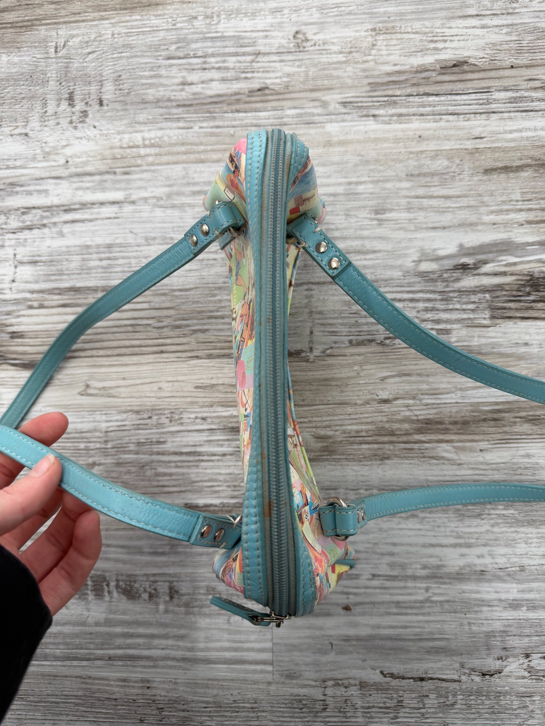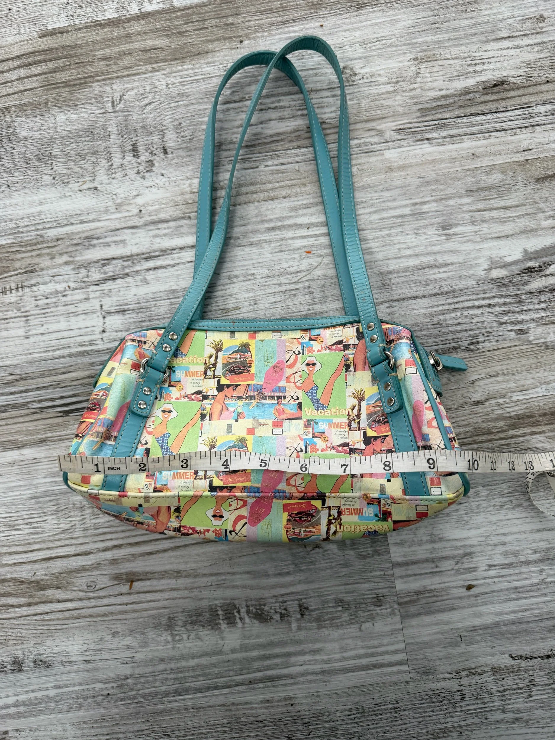This graphic and fun colorful bag is perfect for a beach trip! The teal straps and trim add the cutest pop of color, in love! Only one <3