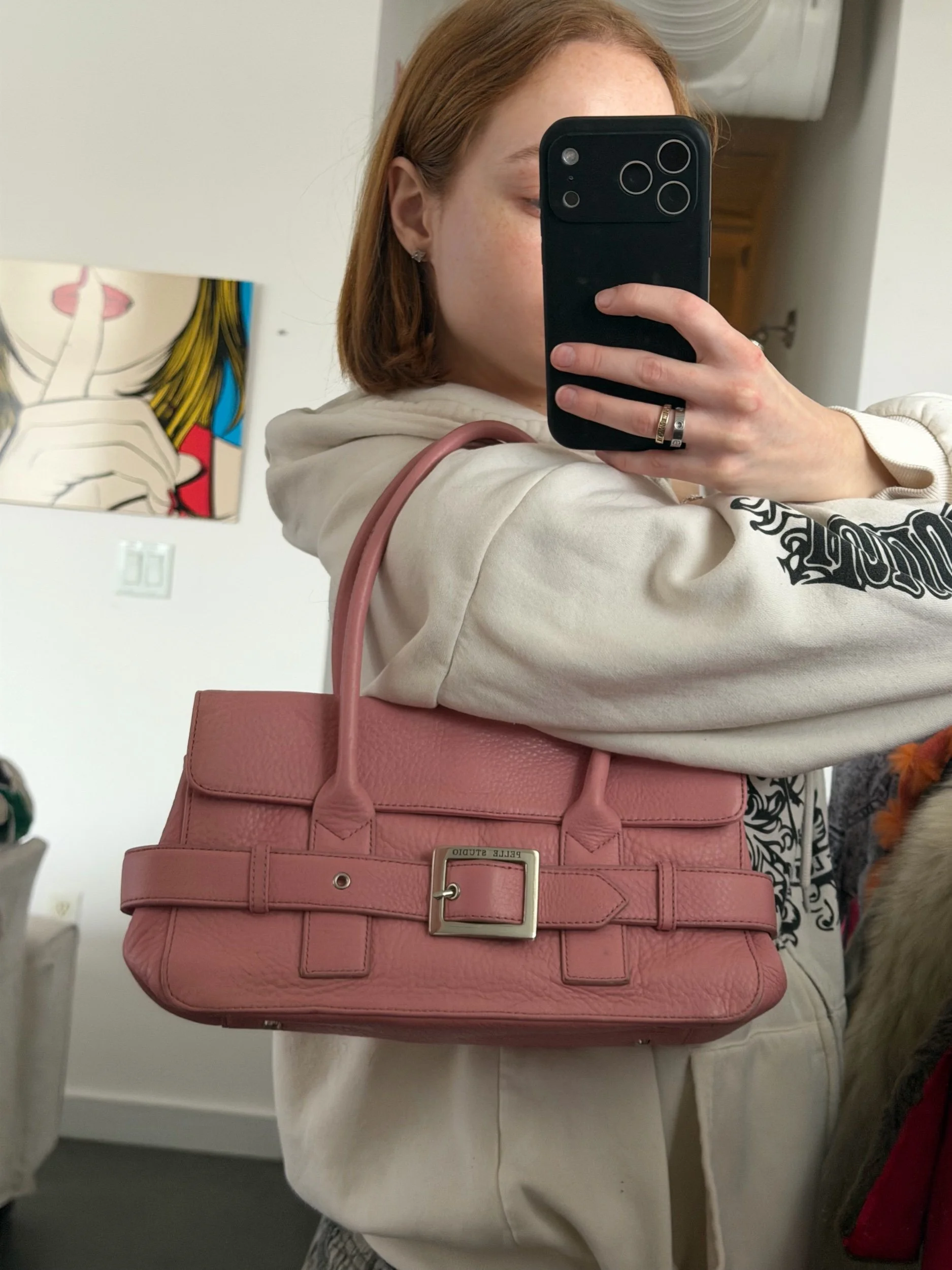 In excellent condition, this Vintage Wilson’s Leather bubblegum pink bag was crafted with the finest material to ensure long lasting wear. It has a full zipper pocket on the back side and a spacious interior that it’s a magnetic flap. This bag is very sturdy and ready for a new home! Only one!