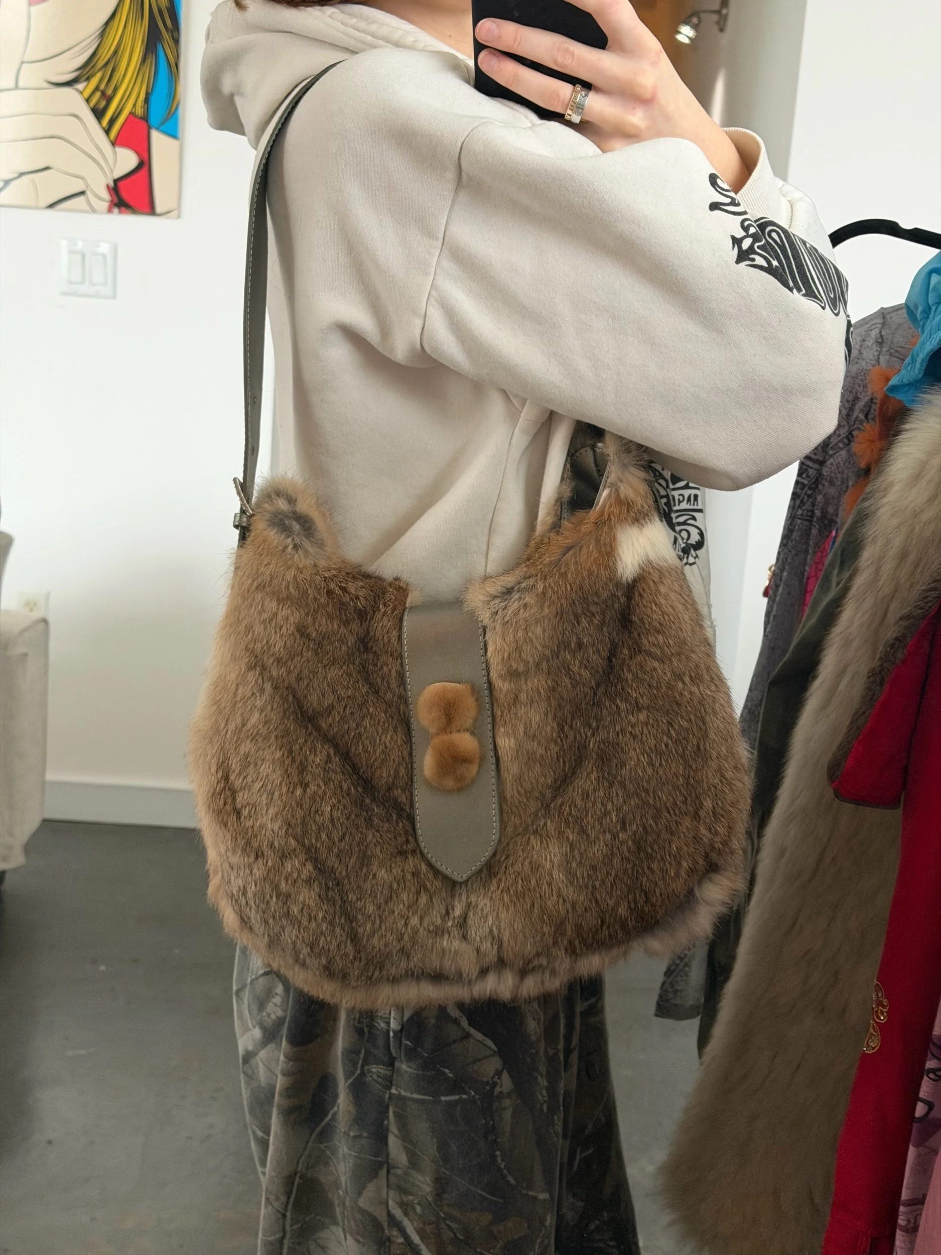Luxurious Aqua Madonna Rabbit Fur handbag with Crystal Buckles on Straps and Closure. Excellent condition- see last photo for size reference